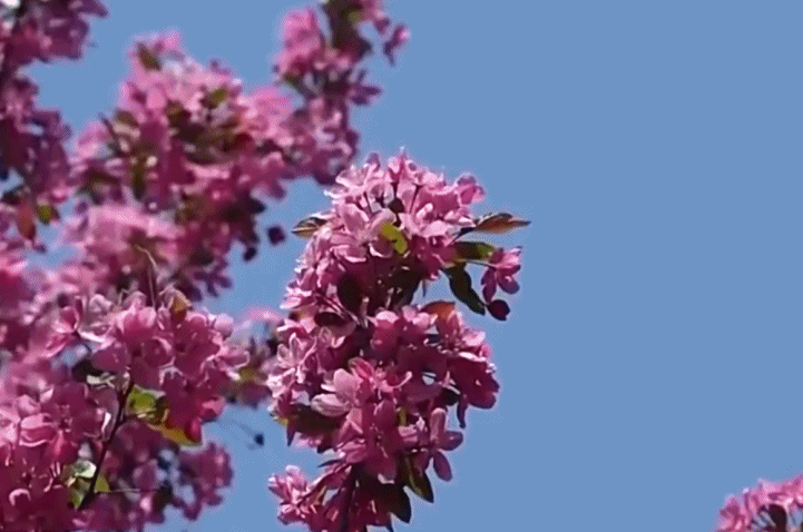 近日,在河北邯郸峰峰矿区,2000多亩海棠花进入盛花期,娇艳的花朵缀满枝头,在蓝天的映衬下尽显春日生机。