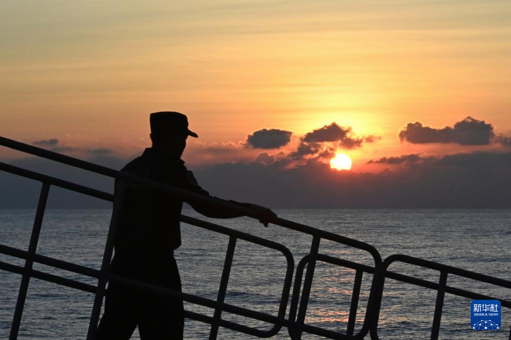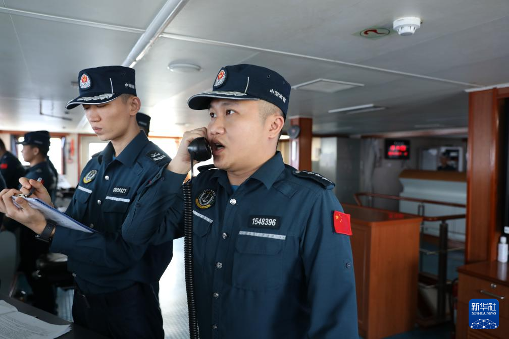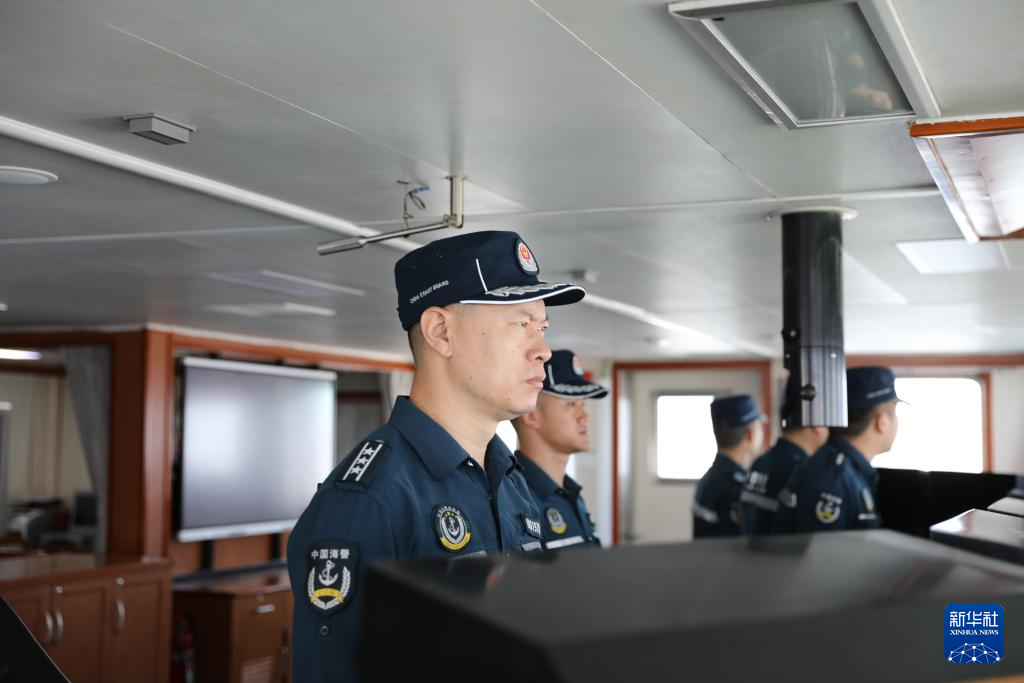 3月1日,中国海警万山舰执法员在甲板上瞭望。