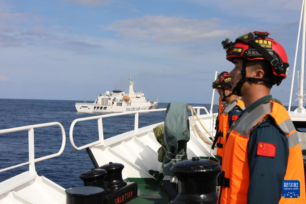 2月14日,中国海警万山舰编队所属舰艇在黄岩岛附近海域开展巡逻任务。